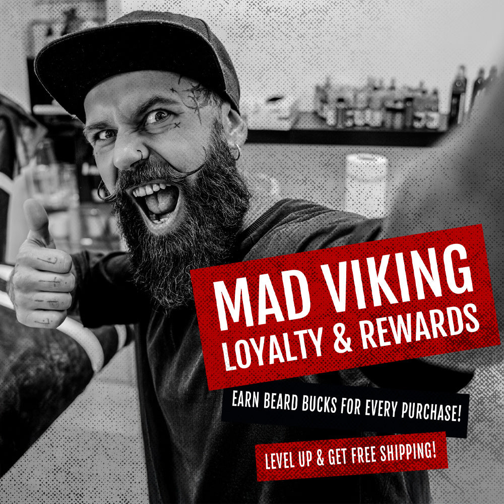Earn Mad Viking Beard Bucks for referring friends or liking our social media! Level up and get free products!